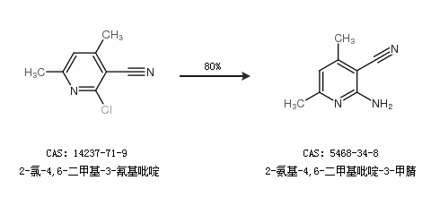 1.通過(guò)2-氯-4,6-二甲基-3-氰基吡啶合成2-氨基-4,6-二甲基吡啶-3-甲腈,收率約80%;