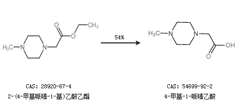 1.通過2-(4-甲基哌嗪-1-基)乙酸乙酯合成4-甲基-1-哌嗪乙酸,收率約54%;