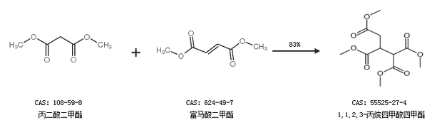 1.通過(guò)丙二酸二甲酯和富馬酸二甲酯合成1,1,2,3-丙烷四甲酸四甲酯,收率約83%;