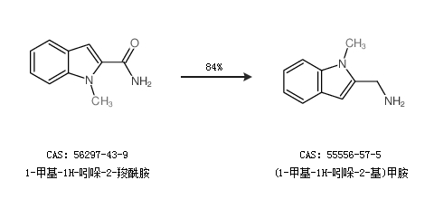 1.通過(guò)1-甲基-1H-吲哚-2-羧酰胺合成(1-甲基-1H-吲哚-2-基)甲胺,收率約84%;