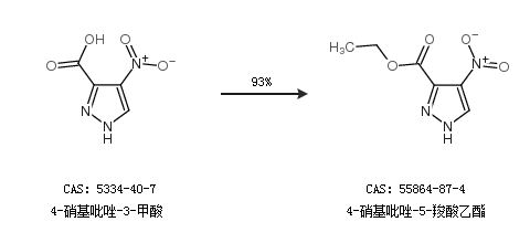 2.通過4-硝基吡唑-3-甲酸合成4-硝基吡唑-5-羧酸乙酯,收率約93%;