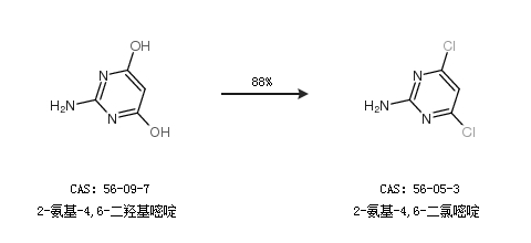 1.通過2-氨基-4,6-二羥基嘧啶合成2-氨基-4,6-二氯嘧啶,收率約88%;
