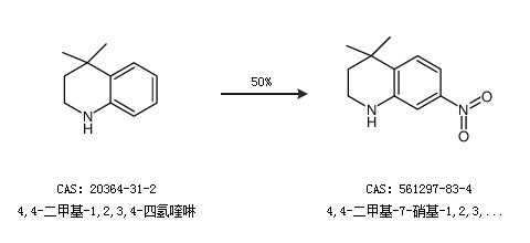 1.通過(guò)4,4-二甲基-1,2,3,4-四氫喹啉合成4,4-二甲基-7-硝基-1,2,3,4-四氫喹啉,收率約50%;