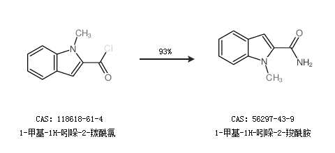 2.通過1-甲基-1H-吲哚-2-羰酰氯合成1-甲基-1H-吲哚-2-羧酰胺,收率約93%;