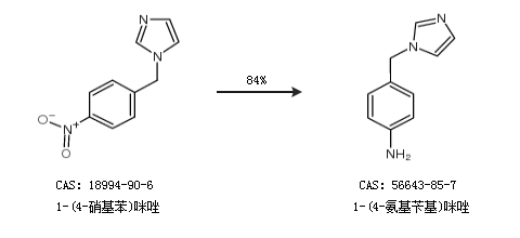 1.通過1-(4-硝基苯)咪唑合成1-(4-氨基芐基)咪唑,收率約84%;