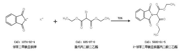 1.通過鄰苯二甲酰亞胺鉀和溴代丙二酸二乙酯合成2-鄰苯二甲酰亞胺基丙二酸二乙酯,收率約78%;