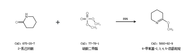 2.通過2-氮己環(huán)酮和硫酸二甲酯合成6-甲氧基-2,3,4,5-四氫吡啶,收率約89%;