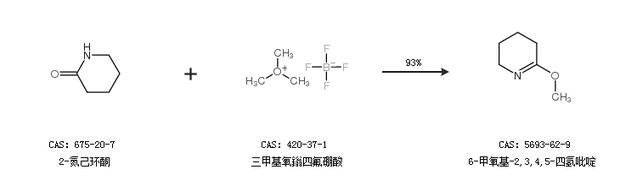 1.通過2-氮己環(huán)酮和三甲基氧鎓四氟硼酸合成6-甲氧基-2,3,4,5-四氫吡啶,收率約93%;