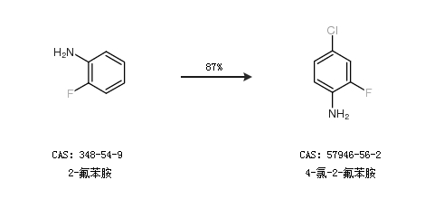2.通過(guò)2-氟苯胺合成4-氯-2-氟苯胺,收率約87%;