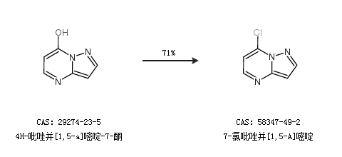 1.通過4H-吡唑并[1,5-a]嘧啶-7-酮合成7-氯吡唑并[1,5-A]嘧啶,收率約71%;