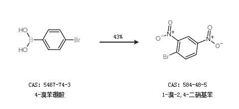 1.通過4-溴苯硼酸合成1-溴-2,4-二硝基苯,收率約43%;
