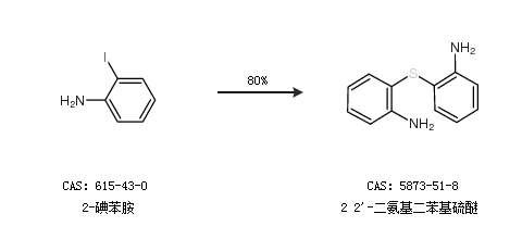 2.通過2-碘苯胺合成2 2''-二氨基二苯基硫醚,收率約80%;