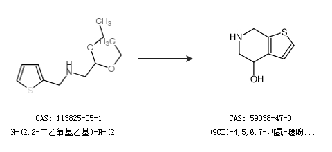 1.通過N-(2,2-二乙氧基乙基)-N-(2-噻吩甲基)甲胺合成(9CI)-4,5,6,7-四氫-噻吩并[2,3-c]吡啶-4-醇
