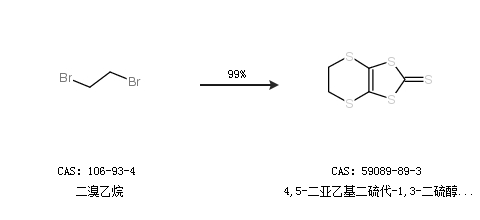 2.通過二溴乙烷合成4,5-二亞乙基二硫代-1,3-二硫醇-2-硫酮,收率約99%;