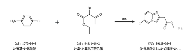 2.通過2-氨基-5-氯吡啶和2-溴-3-氧代丁酸乙酯合成(6-氯咪唑并[1,2-a]吡啶-2-基)-乙酸乙酯,收率約40%;