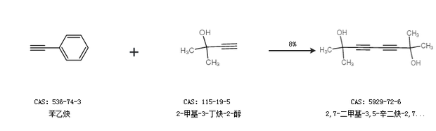 2.通過苯乙炔和2-甲基-3-丁炔-2-醇合成2,7-二甲基-3,5-辛二炔-2,7-二醇,收率約8%;