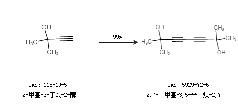 1.通過2-甲基-3-丁炔-2-醇合成2,7-二甲基-3,5-辛二炔-2,7-二醇,收率約99%;