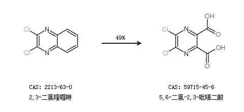 1.通過(guò)2,3-二氯喹喔啉合成5,6-二氯-2,3-吡嗪二酸,收率約49%;