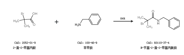 2.通過2-溴-2-甲基丙酸和苯甲胺合成N-芐基-2-溴-2-甲基丙酰胺,收率約84%;