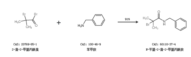 1.通過2-溴-2-甲基丙酰溴和苯甲胺合成N-芐基-2-溴-2-甲基丙酰胺,收率約91%;