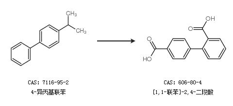 1.通過4-異丙基聯(lián)苯合成[1,1-聯(lián)苯]-2,4-二羧酸