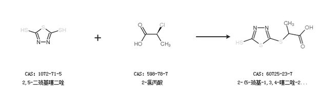 1.通過2,5-二巰基噻二唑和2-氯丙酸合成2-(5-巰基-1,3,4-噻二唑-2-硫基)丙酸