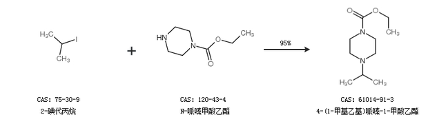 1.通過2-碘代丙烷和N-哌嗪甲酸乙酯合成4-(1-甲基乙基)哌嗪-1-甲酸乙酯,收率約95%;