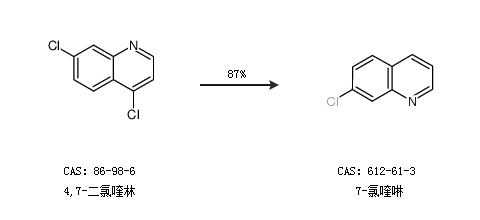 2.通過4,7-二氯喹林合成7-氯喹啉,收率約87%;