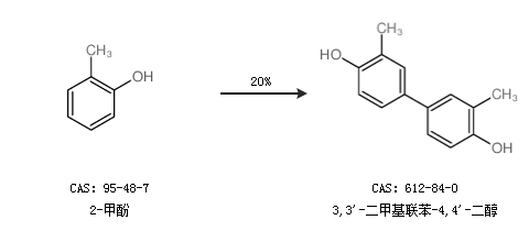1.通過2-甲酚合成3,3''-二甲基聯(lián)苯-4,4''-二醇,收率約20%;