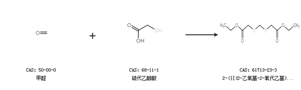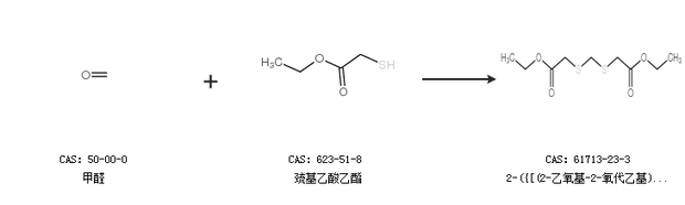 英文別名 3,5-Dithia-heptandisaeure-diaethylester;3,5-dithia-heptanedioic acid diethyl ester;Methylen-bis-(thioglykolsaeure-aethylester);Ethyl (([(2-ethoxy-2-oxoethyl)sulfanyl]methyl)sulfanyl)acetate;Formaldehydmercaptalessigsaeure-diaethylester;Methylenebis(ethyl thioglycolate);Methylen-bis-sulfidessigsaeurediethylester;Bis-aethoxycarbonylmethylmercapto-methan;