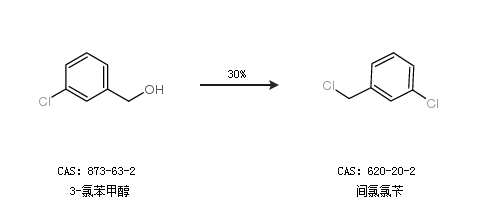 1.通過3-氯苯甲醇合成間氯氯芐,收率約30%;