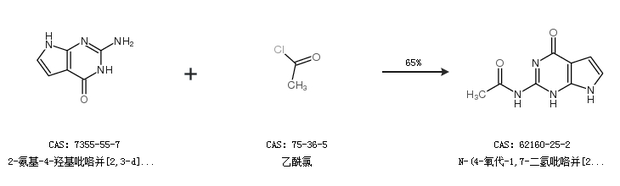 1.通過2-氨基-4-羥基吡咯并[2,3-d]嘧啶和乙酰氯合成N-(4-氧代-1,7-二氫吡咯并[2,3-d]嘧啶-2-基)乙酰胺,收率約65%;
