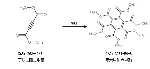 1.通過丁炔二酸二甲酯合成苯六甲酸六甲酯,收率約99%;