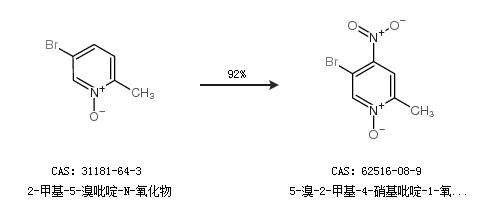 1.通過(guò)2-甲基-5-溴吡啶-N-氧化物合成5-溴-2-甲基-4-硝基吡啶-1-氧化物,收率約92%;
