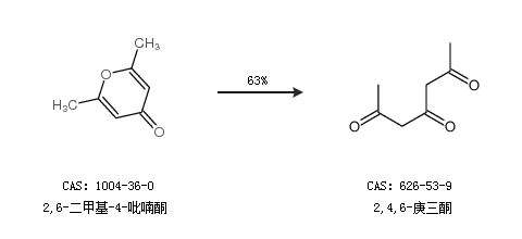 1.通過2,6-二甲基-4-吡喃酮合成2,4,6-庚三酮,收率約63%;