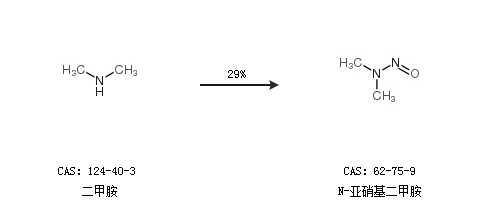 2.通過二甲胺合成N-亞硝基二甲胺,收率約29%;