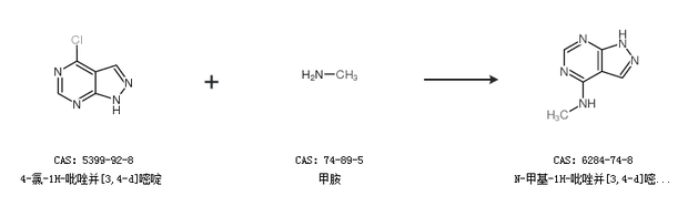 1.通過4-氯-1H-吡唑并[3,4-d]嘧啶和甲胺合成N-甲基-1H-吡唑并[3,4-d]嘧啶-4-胺