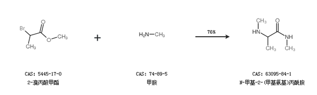 1.通過2-溴丙酸甲酯和甲胺合成N-甲基-2-(甲基氨基)丙酰胺,收率約76%;