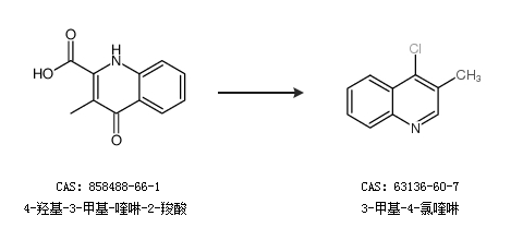 1.通過(guò)4-羥基-3-甲基-喹啉-2-羧酸合成3-甲基-4-氯喹啉