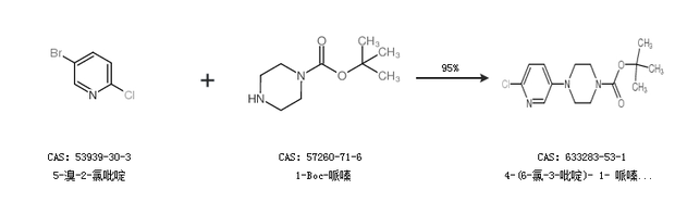 1.通過5-溴-2-氯吡啶和1-Boc-哌嗪合成4-(6-氯-3-吡啶)- 1- 哌嗪羧酸 1,1-二甲基乙酯,收率約81%;