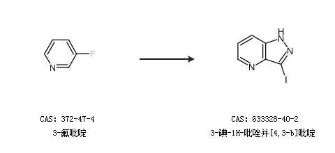 2.通過(guò)3-氟吡啶合成3-碘-1H-吡唑并[4,3-b]吡啶