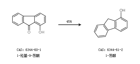 1.通過1-羥基-9-芴酮合成1-芴醇,收率約45%;