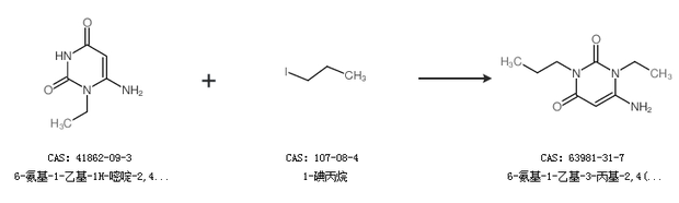 1.通過6-氨基-1-乙基-1H-嘧啶-2,4-二酮和1-碘丙烷合成6-氨基-1-乙基-3-丙基-2,4(1H,3H)-嘧啶二酮