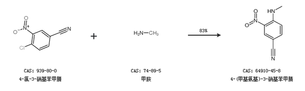 2.通過4-氯-3-硝基苯甲腈和甲胺合成4-(甲基氨基)-3-硝基苯甲腈,收率約83%;