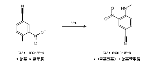 1.通過3-硝基-4-氟苯腈合成4-(甲基氨基)-3-硝基苯甲腈,收率約68%;