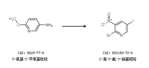 2.通過5-氨基-2-甲氧基吡啶合成2-溴-5-氟-3-硝基嘧啶