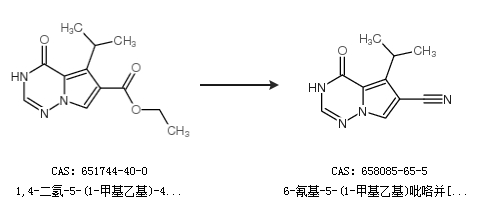 2.通過(guò)1,4-二氫-5-(1-甲基乙基)-4-氧代-吡咯并[2,1-f][1,2,4]噻嗪-6-羧酸乙酯合成6-氰基-5-(1-甲基乙基)吡咯并[2,1-f][1,2,4]噻嗪-4(3H)-酮