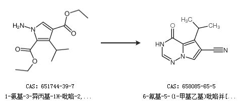 1.通過(guò)1-氨基-3-異丙基-1H-吡咯-2,4-二羧酸二乙酯合成6-氰基-5-(1-甲基乙基)吡咯并[2,1-f][1,2,4]噻嗪-4(3H)-酮