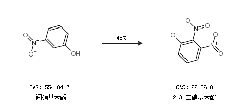 1.通過(guò)間硝基苯酚合成2,3-二硝基苯酚,收率約45%;