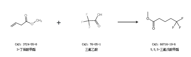 2.通過3-丁烯酸甲酯和三氟乙酸合成5,5,5-三氟戊酸甲酯